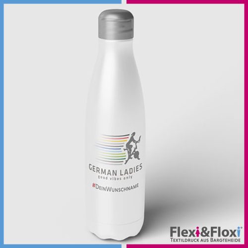 Edelstahlflasche aus der German Ladies Good Vibes Collection. Wie immer bedruckt mit dem Motiv der German Ladies und auf Wunsch mit Deinem Leaderboardnamen.